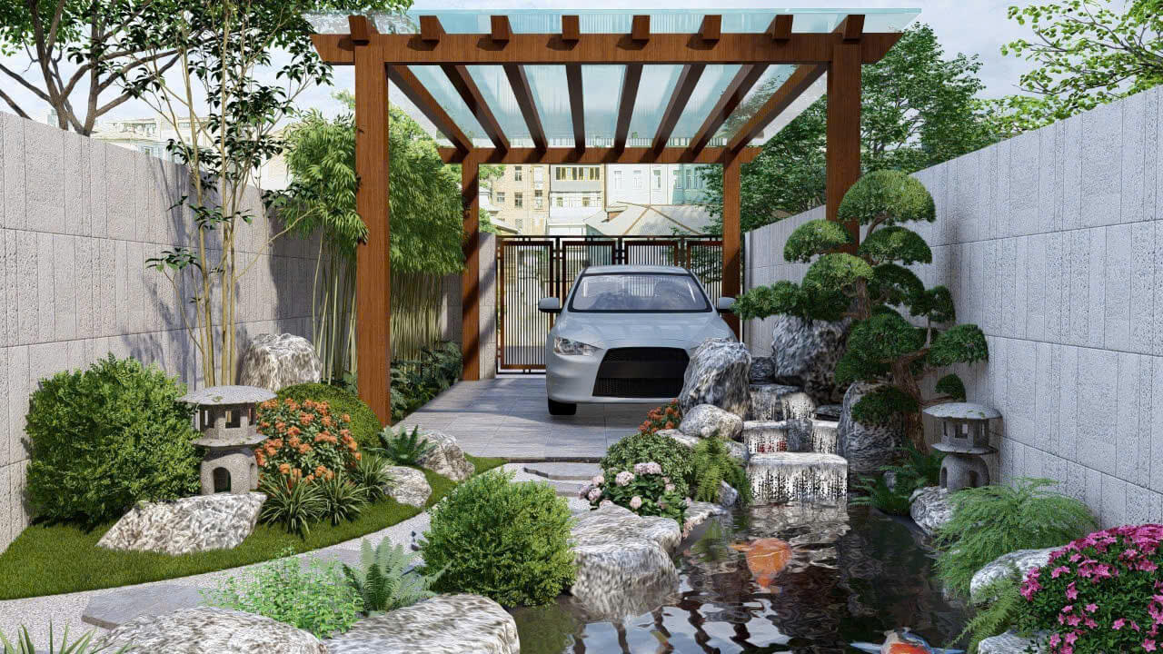 Thi công cảnh quan sân vườn kết hợp với hồ cá Koi