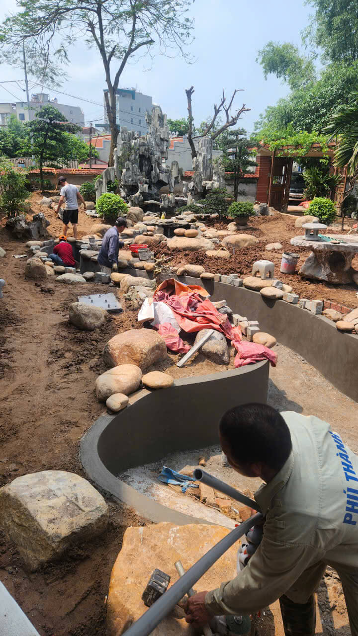 Thi công cảnh quan sân vườn kết hợp với hồ cá Koi